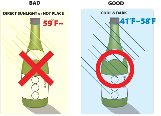The best storage temperature is. To store a closed bottle of sake keep it in a dark place away from light or heat sources and a relatively cool temperature. Generally the best way to store sake is in a bottle with a cork stopper which will keep oxygen.